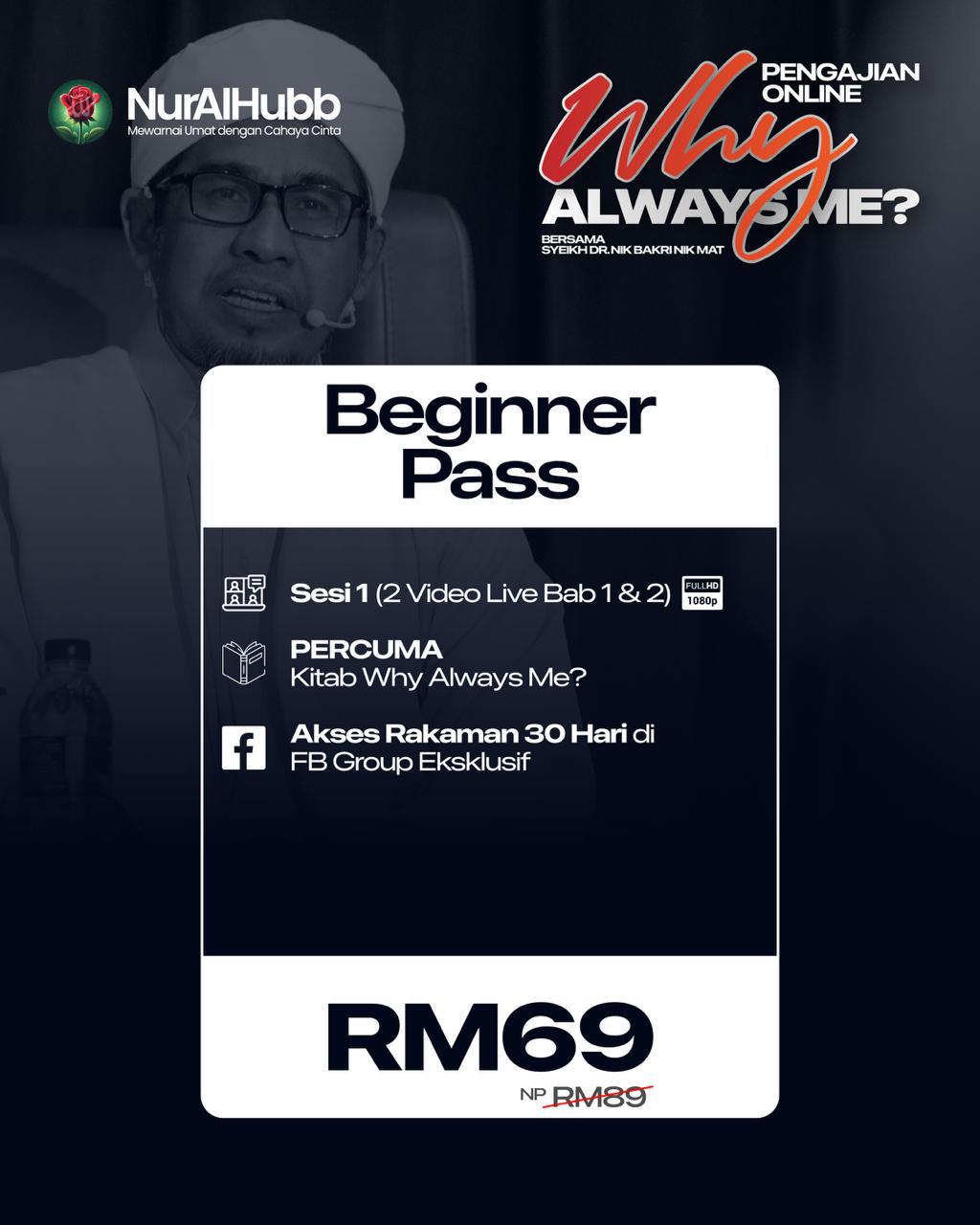 Beginner Pass – Pengajian Online Why Always Me bersama Syeikh Dr. Nik Bakri Nik Mat adalah peluang terbaik untuk anda memahami makna kehidupan dan menilai setiap ujian dengan hati yang lebih tenang.