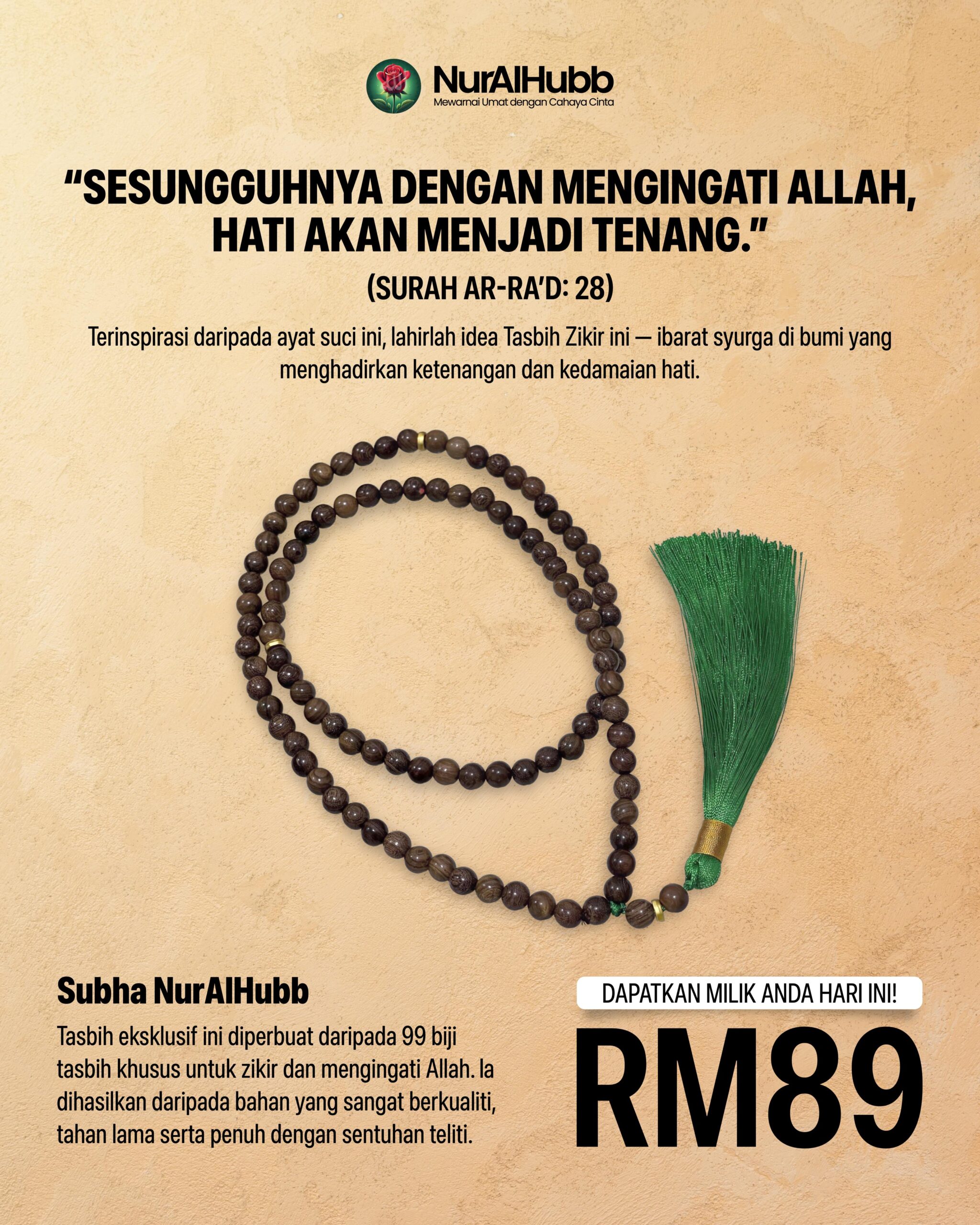 💚 Dapatkan Subha NurAlHubb hari ini dan rasai sendiri ketenangan zikrullah dengan penuh keindahan.